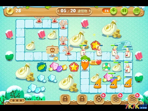 1、保卫萝卜3集市第13关游戏截图1当打掉一定的场景道具后,如图所示,放置冰冻星星以及太阳花,尽快的清掉小金库。保卫萝卜3集市第13关游戏截图2前期先不用打BOSS,因为没输出,打也打不死,做好减速工作就可以了。