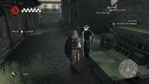 3、剧情过后出城前往佛罗伦萨。任务一:PracticeWhatYouPreach目标:练习新的刺杀方式到达达芬奇家里后与他对话接到任务,随后来到旁边的小院子。