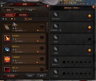 奔雷击:猴子必备技能,前面四个精修点必加,重天点满,熟练于心因为精修点不足,等到50级后再加。(前面攻速和精修点没有堆起来,加了作用不大,熟练于心配合神行术才能发挥最大作用)。