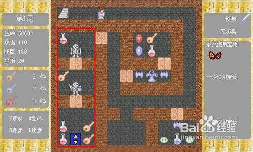 3、直奔五楼,取铁剑,右上方拿一堆钥匙,直奔九楼,取铁盾。然后杀回一楼,左下脚取楼层跳跃器(PAGEUP或PAGEDOWN可直接上下楼)。然后有选择地杀到10楼,过关。