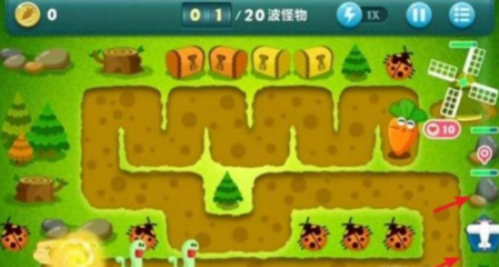 关卡模式:壁垒模式可用炮塔:冰锥塔、磁铁、便便塔、回旋镖。先在地图右上角放置回旋镖,攻击大钱袋的同时,也可以清小怪。