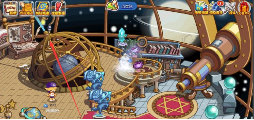5、彩虹河流 玩家在彩虹河流里面点击飞船边上的小球,然后把跑出来冥狐的蓝色幽火移动到飞船任意位置,当飞船能量充满后就可以得到火灵石。