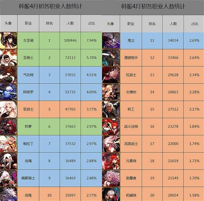 2、排名二线职业的,一共有12个职业,他们依次是“特工、忍者、团长、剑魂、女柔道、阿修罗、暗帝、合金战士、男街霸、血法、帕拉丁、刺客”,阿修罗和剑魂排到二线,有点让人意外。