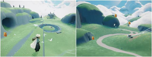 如下:叉腰先祖 在峡谷有个冰湖的地图上,然后往如图所示的位置观察,其中有个亭子,然后需要飞到如图所示的位置,在这个半山腰上,就可以有一个先祖。激活之后跟随他,之后就可以得到这个动作。