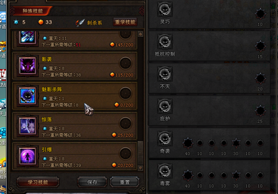 2、飞星,飞星一重天,精修点点出夺力、连击。刀阵,刀阵尽量提升重天数,精修点点出眩晕、不灭、储存、加速旋转点满、迅捷。拉刃,拉刃尽量提升重天数,精修点点出诅咒、速攻、回气点满。