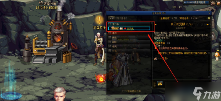 4、地下城三觉任务位置说明:首先,角色等级需要达到100级,觉醒任务才会出现,打开“角色”任务栏的觉醒任务。任务分为上下两部分,真正的觉醒上,共分为4步,与特定的NPC进行对话即可完成。