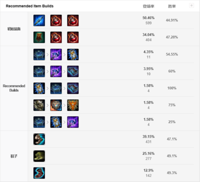 出门装:多兰戒和两个红瓶或者腐败药水。六神装:深渊面具、轻灵之靴、日炎斗篷、杀人戒、冰脉护手、海克斯科技原型腰带。这套出装又肉又有输出,石头人的短板非常明显,腿短手短,易耗蓝。