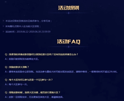 1、A:皮肤一旦领取完毕,无法更换至其他大区,请谨慎选择。6月幸运召唤师点击进入活动入口。