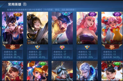 第二步:回到常用英雄界面,再进一步筛选出本命。比如你擅长的是对抗路,但英雄胜率都很接近,那就展开MVP次数、金牌、银牌来平均的对比一下,决出自己的本命。第三步:通过以上对比,足以确定哪个英雄就是你的本命英雄。