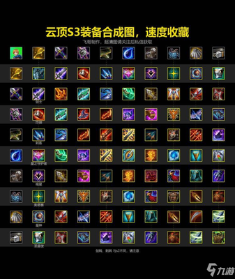 2、S5装备合成图:● 德莱文之斧:使用者每拥有 1 枚金币,就获得 1 点攻击力(最高 60 点)。每次攻击装备叠加 1 层状态。叠满 100 层后,获得 10 枚金币和 1 件基础装备。