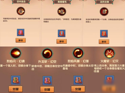 悟空技能搭配:升龙+七十二斩+筋斗云+嗜血+火魔斩(或者替换成火眼金睛)这几个都好。