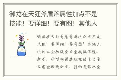 4、御龙在天法师属性加点法师的属性点要全加智力!只加智力就可以了。要是不小心加了别的赶紧洗掉全部加智力。80以后推荐练冰法。火法只是单纯的攻击高,比较脆弱。冰法后期还是挺牛的,控制技能比较多。御龙在天法师技能加点基础系前期(50级之前)焕火+5,冰心冷+1或不加。御水决不加。