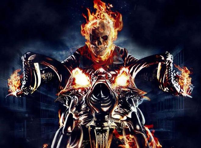 恶灵骑士(Ghost Rider)是漫威漫画旗下超级英雄,形象一般是燃烧着的一副人体骷髅、穿着皮衣、背负铁链的英雄,并骑上燃烧着的摩托车,到各处对付邪恶敌人。