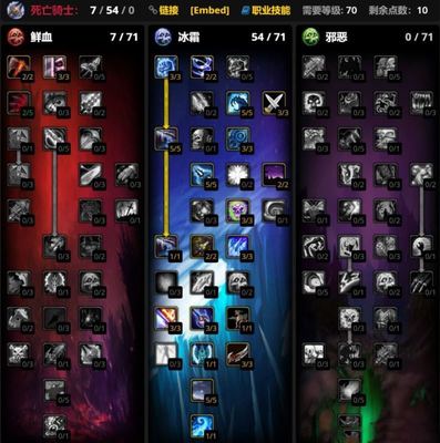 2、冰DK天赋推荐冰DK在前夕版本中天赋加点也没有太大的可变性,冰霜系必须投入54点天赋点,剩下的可以自行选择投入到鲜血系或者是邪恶系。