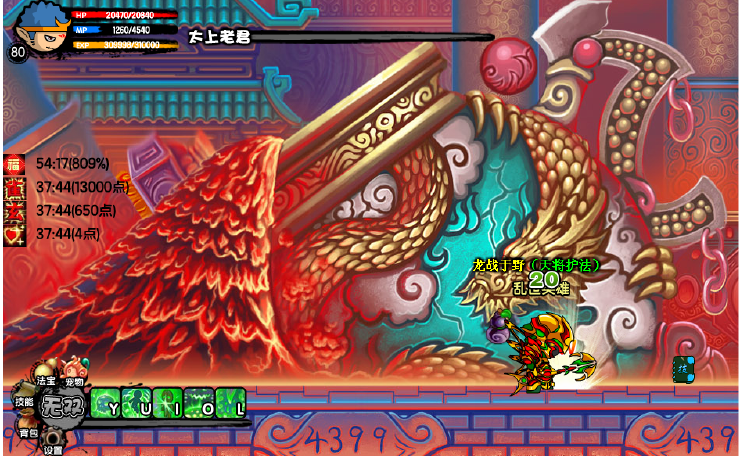 3、造梦西游3朝会殿怎么打沙僧攻略 先简单说下为什么叫沙僧终结地,因为沙僧很难打出朝会殿,牛妖+蛇妖的完美配合会把你虐的。不过只要有好伞,25~28级打出没问题(先腾空击干蛇妖,再铲子木魔舞或腾空击杀之)。